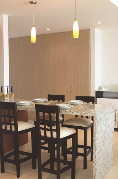 Great looking bar stools as seen in a unit that was recently furnished in Delcanto luxury resort in nueva Vallarta. Would look great in bar setting can be placed on both sides a thin bar for extra seating.