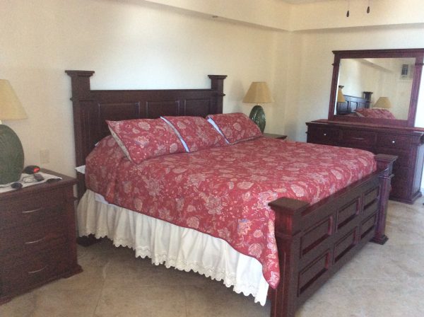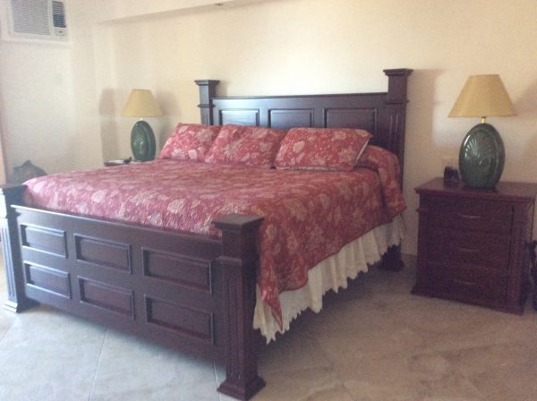 8 piece bed set, darkwood finish, elegant and stylish. Includes headboard and foot board, 2 night stands, dresser and mirror. The night stands or bed side tables measure 28X21X30 inches which are 3 drawer and bigger than a normal bed side table. Also,The dresser including the mirror measures 60 X 21 X 36 inches.