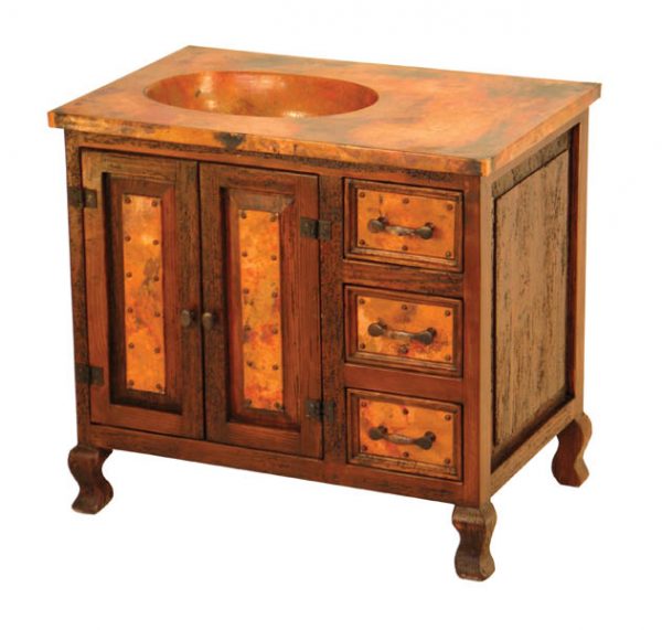 Truly unique copper sink vanity including copper sink. Compare our prices to other companies on line. We are a true low cost leader when it comes to copper furnishings. In fact we average 30%-25% lower on most items. Coppers amazing properties don’t allow germs to last long on these surfaces. Great for bathroom use. Notice the copper plates used on most hospital doors for this very purpose to reduce the spread of germs. Sink designs can vary upon customers requests. This hand hammered copper sink and vanity top are very intricate and detailed. The copper working craftsmanship has been honed and passed down through generations of families working with copper. To see these pieces in person is amazing. Please not piece is shown here in chocolate but also available in a wide range of colors including the most popular brown.