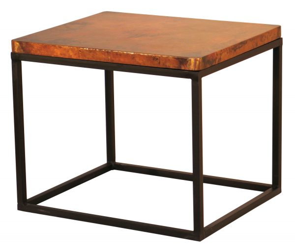 Accent your living- or bedroom decor with this Copper Collection Julia end table. Features think iron work that forms a cube to support the colorful hammered copper top.