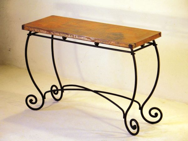 The elegant pedestal created by the detailed iron work in the Bola end table makes for a truly unique southwestern piece. The colorful copper top is perfect for accenting your living- or dining room.