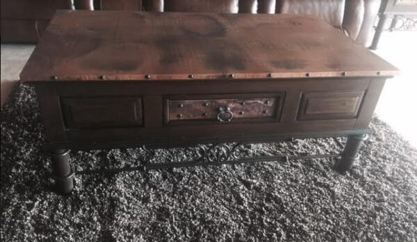 coffe table copper chocolate finish Coffee table with a choc finish copper top