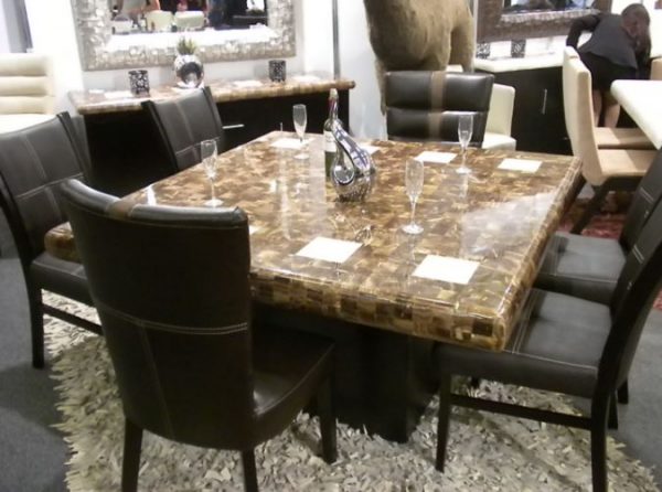 Onyx caramel in color with great looking hues table is elegant and very tastefully done. High quality and excellent workmanship. Manufacturer has been working with marble and onyx tables for years and puts out excellent dinning tables, coffee tables, and other fine works of furniture. Guaranteed to satisfy and impress. Dinning table will help increase rentals and show great when shooting your unit to advertise. Price also includes chairs shown here or other chairs can be added in a different style.