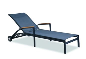 Nice looking sling style lounger with many upgrades. Nice upgraded arm rest with all weather wood style made with an aluminum frame for light weight and durability. Measures approximately 28′ X 80′ X 12′