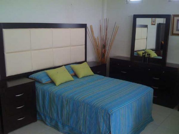 Aspen bedroom set. Faux leather padded headboard, 3 drawer night stands with matching dresser and mirror. Sure to add style to any bedroom. See this great price and others in our bedroom section.