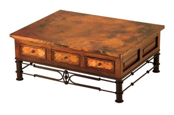 6 drawer coffee table. Exquisite hand hammered copper. Created by hand each coffee table is made unique and is a one of kind coffee table. We also can make similar style in 2, 4, and 6 drawer coffee tables. Inquire now for your specific coffee table needs. Each piece of copper and wood furniture can vary in color due to the uniqueness of copper used. Hand hammered copper can take on variations of colors. Comes with great looking pablo base. See details.